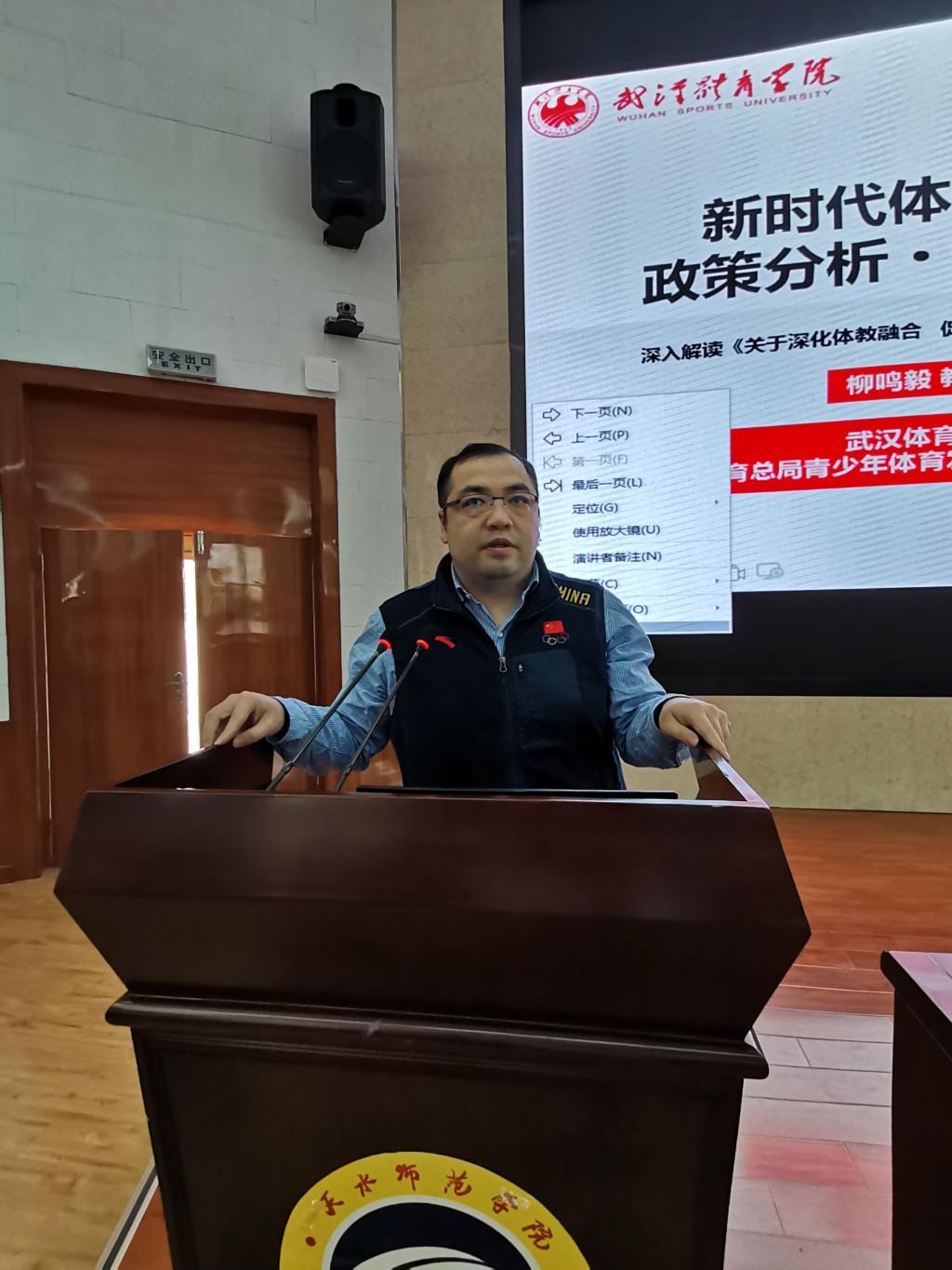 11月2日,在2号报告厅,Beat365官网成功邀请到武汉Beat365官方网站柳鸣毅教授作了《新时代体教融合政策分析·创新发展》的学术报告。