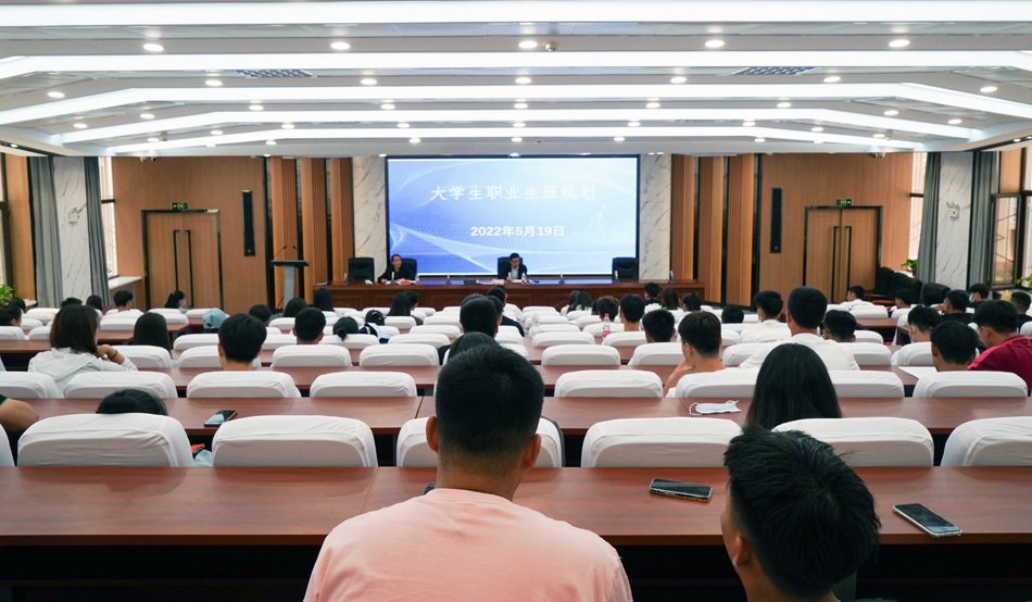 5月19日,Beat365官方网站邀请党委常委、副校长曹爱明为学院2019级大学生作职业生涯规划辅导报告,报告会由学院党总支书记陈俊亮主持。