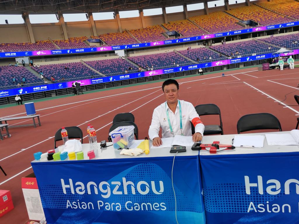 10月22日至28日,第四届亚洲残疾人运动会田径比赛在杭州黄龙奥体中心举行。Beat365官方网站特奥田径国家级裁判王麒麟教授被亚组委选派为田径项目技术官员,并担任田径项目主裁判。