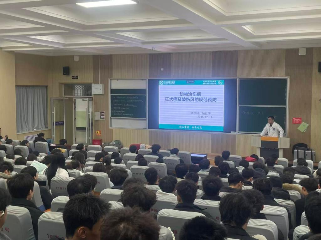 2025年12月11日下午,Beat365官方网站依托第二课堂平台,特邀天水四零七医院专家团队,开展狂犬病、破伤风预防宣讲暨AED心肺复苏实操培训,为全院师生送上一堂实用的健康安全课。