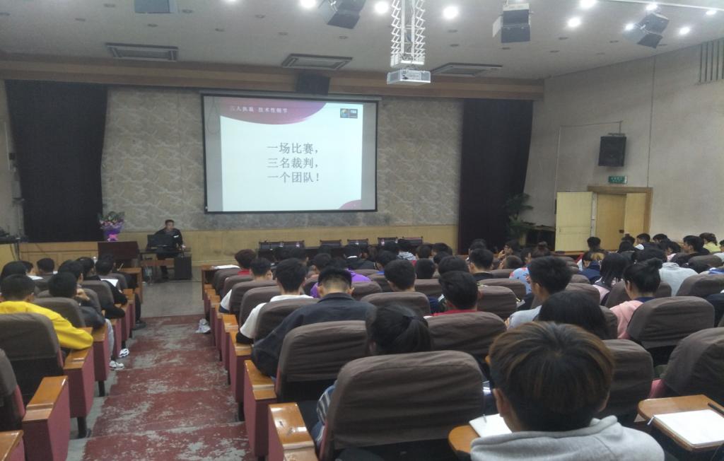 近日,为了提高我校篮球裁判员的业务水平,在天水师范学院学生第二十届暨教职工第十五届“园丁杯”篮球比赛开蔗之际,我们有幸邀请到兰州城市学院Beat365官方网站副院长、国家级裁判员、甘肃省执裁WCBA联赛裁判罗睿教授,苏波、张飞等国家级裁判员为我校篮协的裁判员们讲解裁判法。