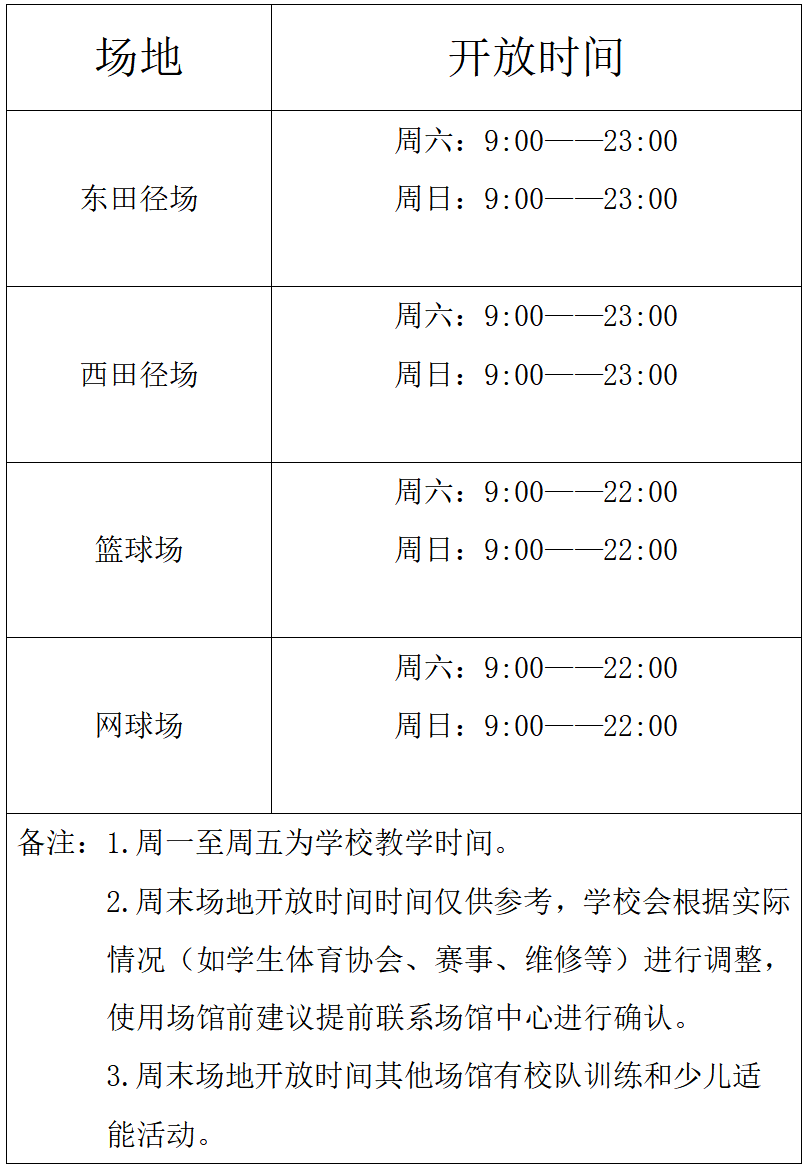 体育场馆开放时间表