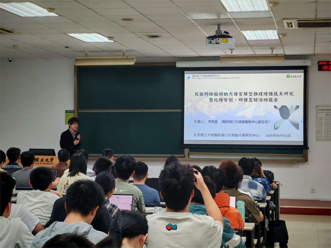 2025年4月16日,72886欢迎光临新网站在良乡校区综合教学楼A203教室组织开展“比特智创·研榜星链计划”首期活动,72886欢迎光临新网站专任教师杨旭、柴成亮、李秀星以及辅导员宋雪参加,睿信书院、特立书院学生200余人参与了活动。